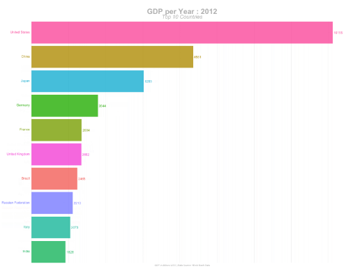 In the example to the right, colours have been added that do not add any value to the chart. Each of the bar could be analysis much easier and as effectively if they were all the same colour. This colouring just distracts from the information you are trying to convey, which is the relative size differences.
