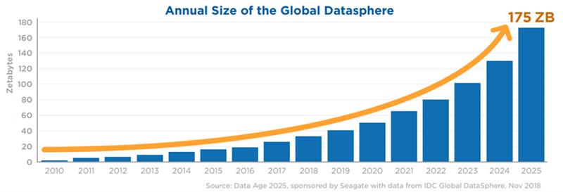 Figure 1: Annual Size of the Global Datasphere from the Data Age 2025 report by IDC.